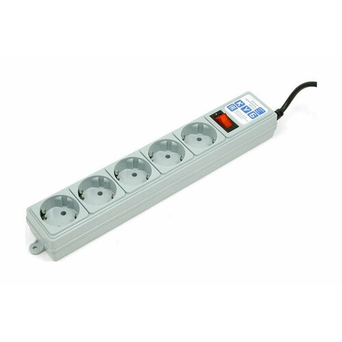 Сетевой фильтр 5 гнезд 3 метра с заземляющими контактами серый 10А/2,2кВт ПВС 3х0,75 B PowerCube