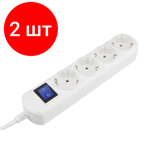 Комплект 2 штук, Удлинитель Power Cube 3 м, 4р с/з, с выкл.10А бел. (PC-4B-3M)