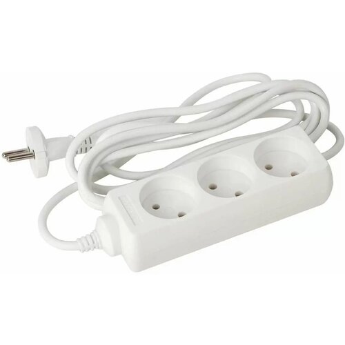 Удлинитель сетевой Sonnen U-133, 3 розетки, без заземления, 6 А, 3 м, белый, 511429
