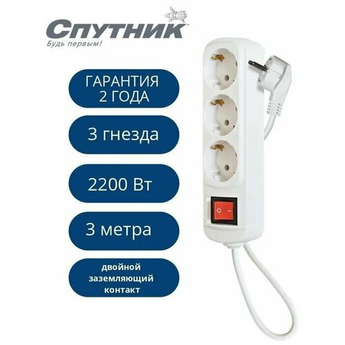 Сетевой удлинитель с заземлением Спутник ВК-303 3м