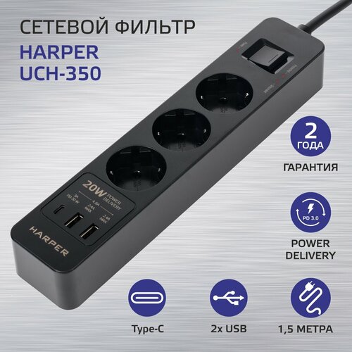 Сетевые фильтры (HARPER UCH-350 BLACK PD3.0)