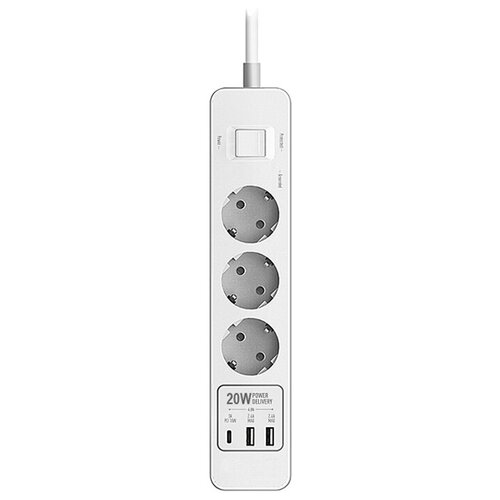 Сетевой фильтр с USB зарядкой Harper UCH-430 White 3 розетки, длина 3м, 4000W 16A