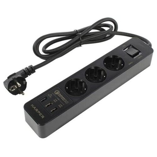Harper Сетевой фильтр с USB зарядкой UCH-410 Black QC3.0 (3 роз,3м,3xUSB (max 4.8A), 4000W) {H00003198}