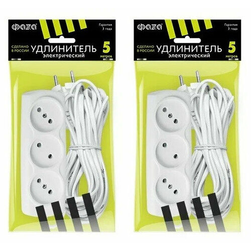 Удлинитель ФАZА УДП-500, 3 розетки, 5 метров, 2 шт