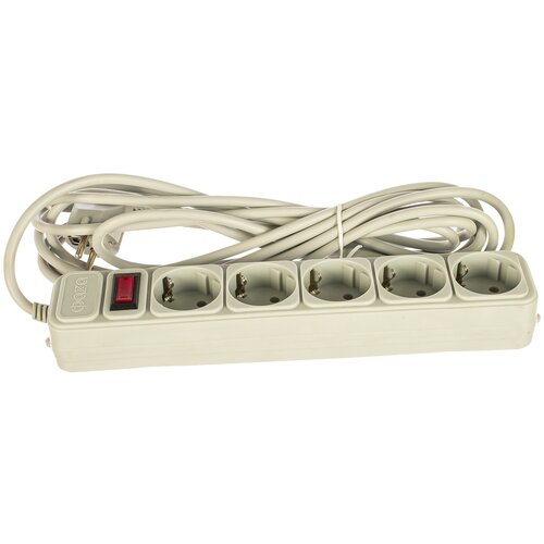 Сетевой фильтр ФАZА FOP-05GS-500, 5 розеток, с/з, 10А / 2200 Вт 5 м 300 мм 50 мм 40 мм 5