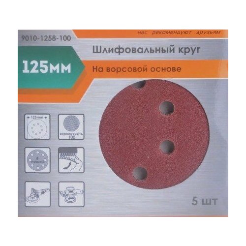 Круг шлифовальный Sturm! "под липучку", D125мм, зерн. 100, 8 отв, 5 штук.