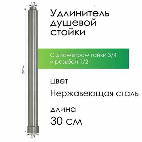 Удлинитель душевой стойки (штанги душа) Сатин 30см гайка 3/4, резьба 1/2 (3334M)