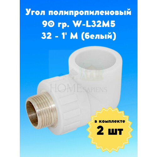 Угол полипропиленовый W-L32M5 32-1' M (белый) 2 штуки 90 гр. внешняя резьба