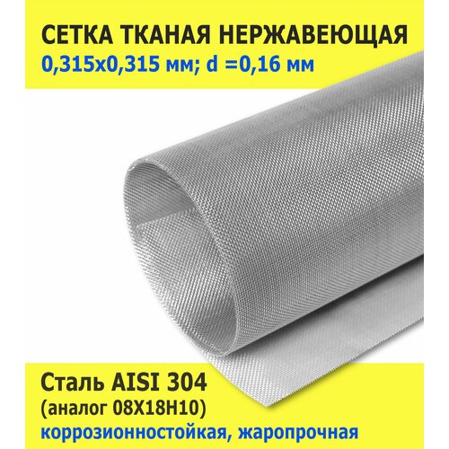 Сетка тканая нержавеющая 0,315х0,315х0,16 мм для фильтрации, очистки. Пищевая сталь AISI 304 (08Х18Н10). Размер 1000х5000 мм.