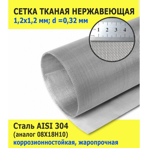 Сетка тканая нержавеющая 1,2х1,2х0,32 мм для фильтрации, очистки, просеивания. Пищевая сталь AISI 304 (08Х18Н10). Размер 1000х1000 мм.