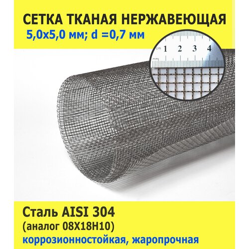 Сетка тканая нержавеющая 5,0х5,0х0,7 мм для фильтрации, очистки, просеивания. Пищевая сталь AISI 304 (08Х18Н10). Размер 1х1 метр.