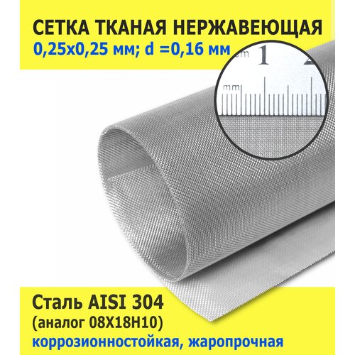 Сетка тканая нержавеющая 0,25х0,25х0,16 мм для фильтрации, очистки. Пищевая сталь AISI 304 (08Х18Н10). Размер 1000х500 мм.