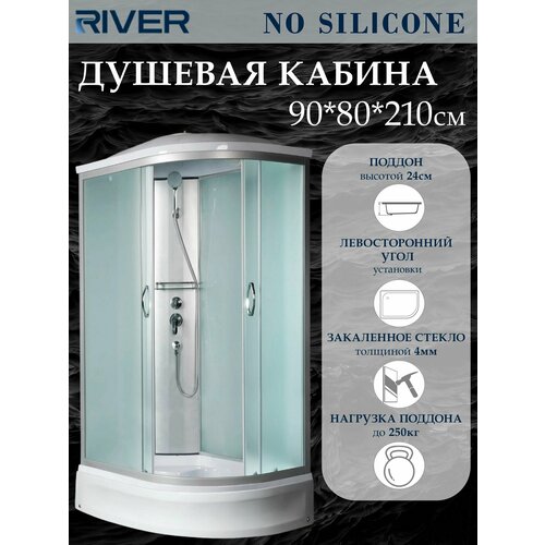 Душевая кабина 90х80 RIVER NARA 90/80/24 МТ L левая, средний поддон, матовое стекло