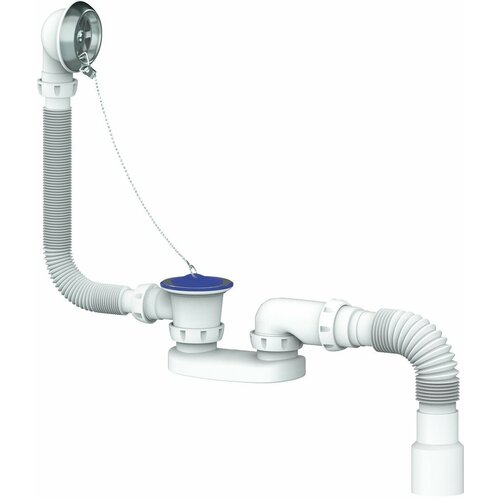 Сифон для ванны регул. плоский (нерж. вып, с пер, пробка с цеп) унив. г. т .40 х 40/50 400