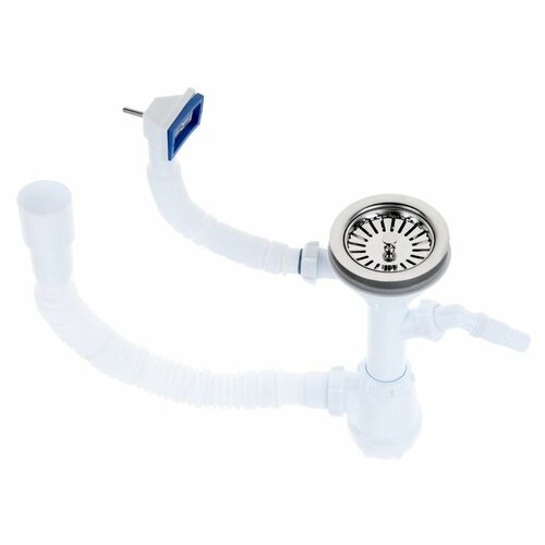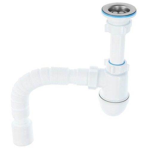 Сифон с гидрозатвором, донный клапан, сетка-грязеуловитель, гофра.