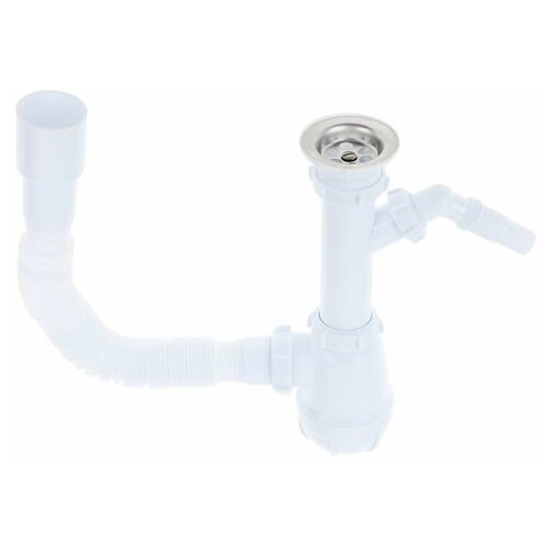 Цены на Сифон с гофрой и клапаном в комплекте для душевой кабины с сеткой (с грязеуловителем) S-S2 белый в г. Москва