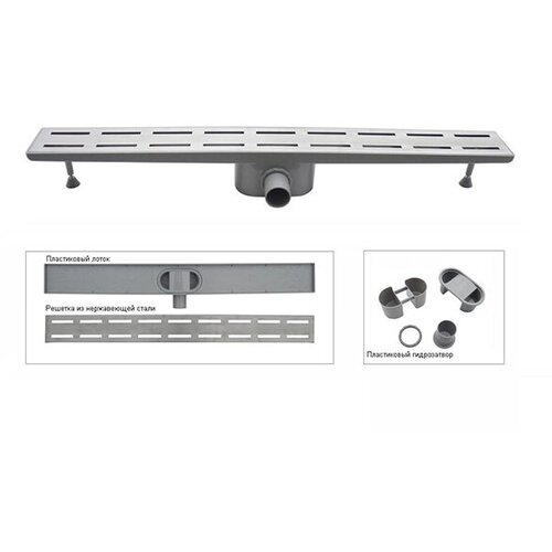 Трап напольный (лоток), решетка для душевого канала, под плитку с горизонтальным выпуском из нержавеющей стали HAIBA 700mm*70mm, серый