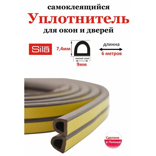 Самоклеящийся уплотнитель Sila Home Р 100 м, 9х5,5 мм, коричневый 39AX