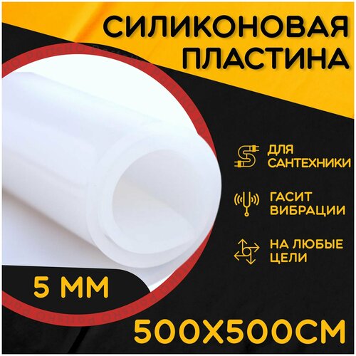 Силиконовая резина термостойкая. Толщина 5 мм. Размер 500х500 мм / Уплотнительная прокладка / Силиконовая пластина белого цвета.