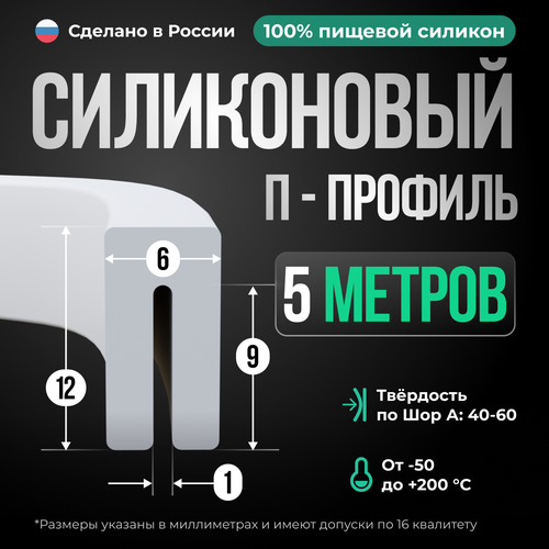 Силиконовый уплотнитель П-образной формы, 5м,.