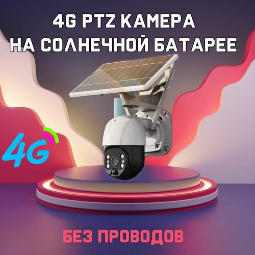 Умная поворотная камера 4G LTE, работает от сим-карты, с микрофоном, ночной съемкой, датчик движения/на солнечных батареях, поворотная / AZ shop