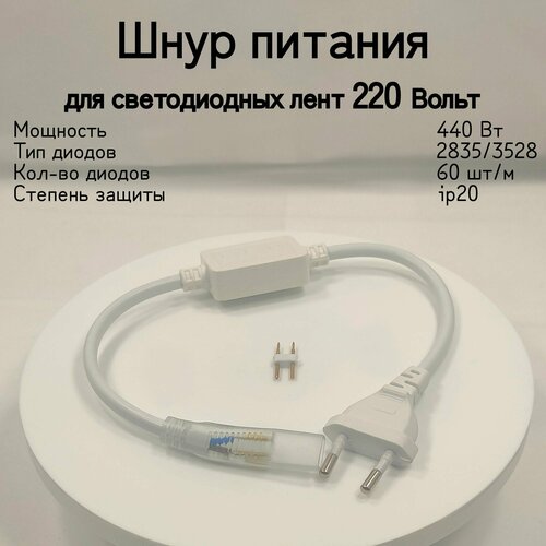 General, Шнур питания с вилкой для светодиодной ленты 60 диодов , Мощность 440 Вт , Питание от сети 220 В , Степень пылевлагозащищенности IP 20 ,1 штука