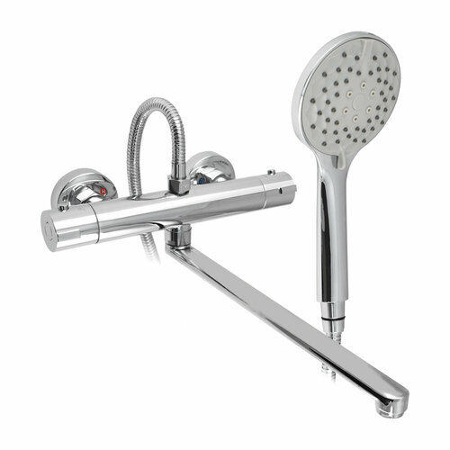 Смеситель в ванную, длинный излив с термостатом, корпус латунь, цвет Хром (3298)