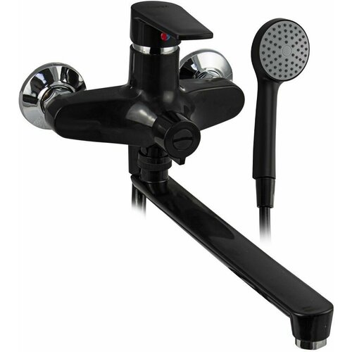 Смеситель в ванную, длинный излив, шаровый, из высокопрочного пластика АБС, черного цвета