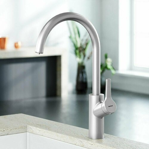 Смеситель для кухни Damixa Eclipse 310721400 никель, с каналом для питьевой воды, картридж Light Flow, покрытие Soft touch, аэратор EcoSave