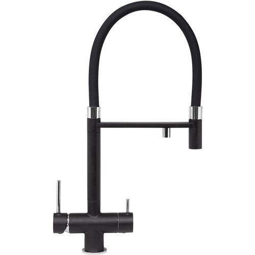 Смеситель для кухни с высоким поворотным С-образным гусаком, черный матовый