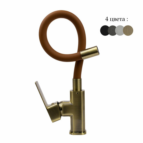 Смеситель для кухни FABIA 9658 цвет бронза шаровый с гибким коричневым изливом корпус квадратный бронза, коричневый