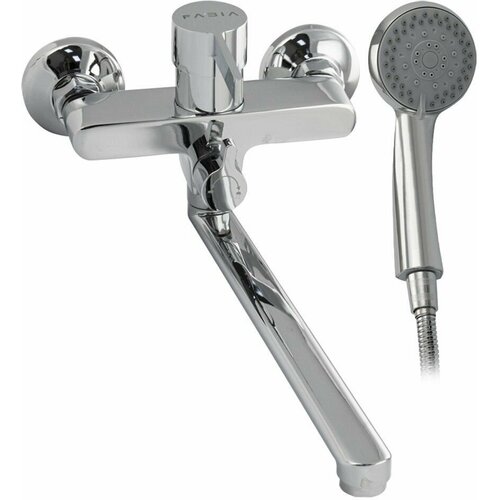 Смеситель в ванную с длинным, плоским изливом, шаровый, с дивертором м/к на корпусе