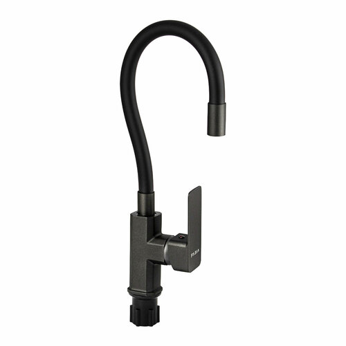 Смеситель для кухни, шаровый, с гибким черным изливом, корпус квадратный, цвет графит, FABIA 9657