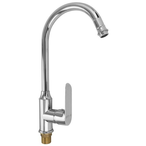 Смеситель для кухонной мойки и раковин, хромированный, боковой, с высоким С-образным изливом, шаровый. Материал изготовления — ЦАМ ...