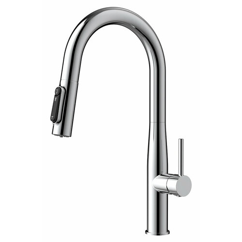 Смеситель для кухни на основании с водопадом, вытягивающимся изливом, Режим душ/ струя, цвет титан