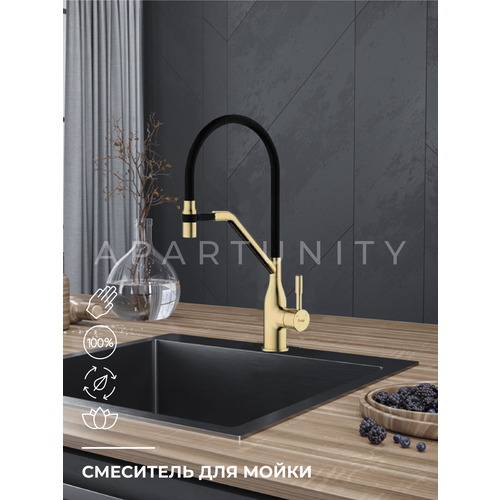 Смеситель OUTE T40313BK-300 - для кухонной мойки выполнен из нержавеющей стали SUS 304, которая отличается хорошими противокоррозио...