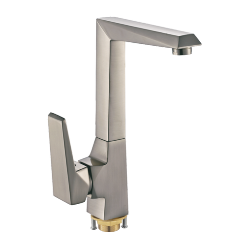 Смеситель для кухни высокий, однорычажный, дизайнерский, поворотный, нержавеющая сталь, сатин
