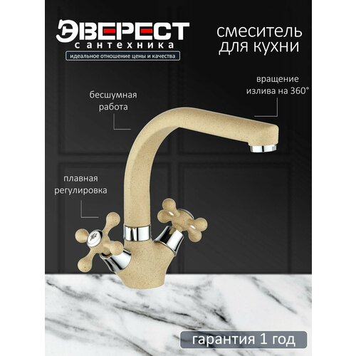 Смеситель на кухню Эверест B69-659 с высоким изливом, керамические кран-буксы, крепление гайка