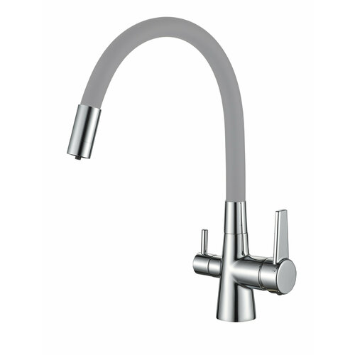 Смеситель комбинированный силиконовый с гибким изливом и с подключением фильтра питьевой воды,/хром