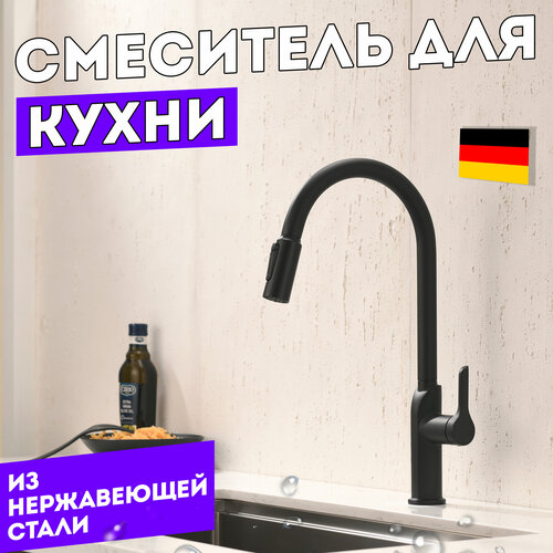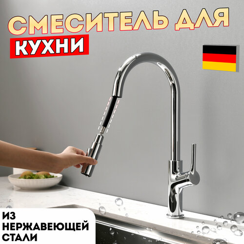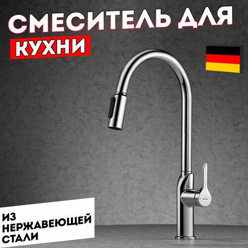 Смеситель для кухни с выдвижным гибким изливом из нержавеющей стали Gerhome