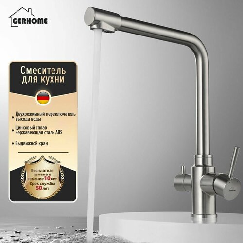 Смеситель для кухни Gerhome из пищевой нержавеющей стали, поворотный с 2-скоростным изливом, режим питьевой воды, два регулятора включения/выключения