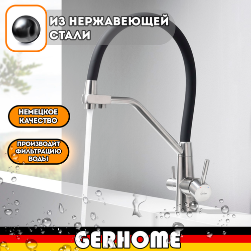 Смеситель Gerhome для кухни из нержавеющей стали, -скоростной излив, телескопический смеситель со шлангом для питьевой воды