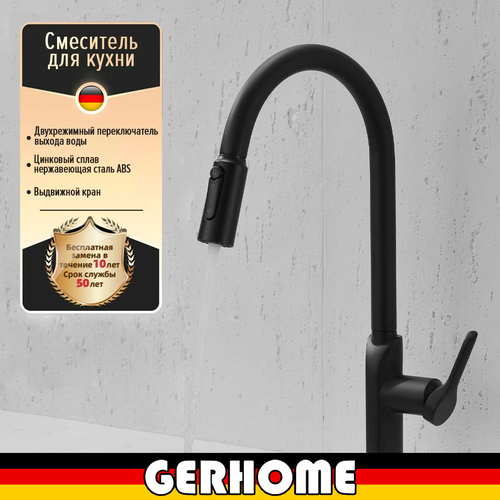 Кухонный смеситель Gerhome из нержавеющей стали, выдвижной смеситель с 2-скоростной излив, силиконовый шланг пищевого качества, двойной переключатель