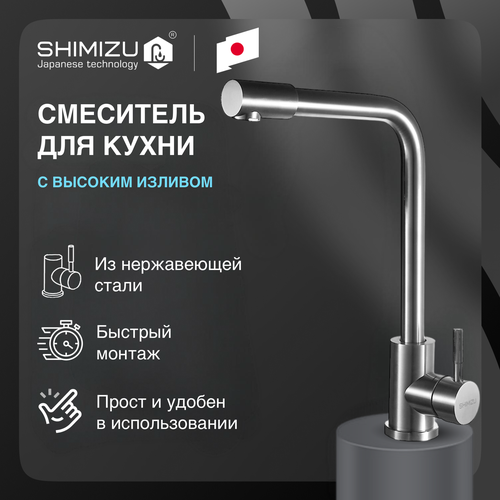 Смеситель для кухни SHIMIZU с высоким изливом из нержавеющей стали