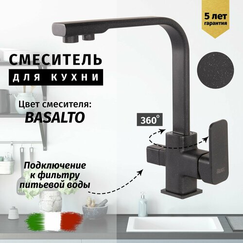 Смеситель для кухни с подключением к фильтру из латуни Vivi Felice (черный матовый с мраморной крошкой)