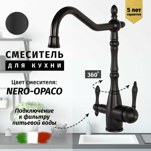 Смеситель для кухни с подключением к фильтру из латуни Vivi Felice (черный матовый)