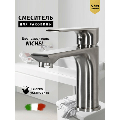 Смеситель для раковины в ванную комнату Wellsee ONCE! and forever 201000206, в наборе 4 в 1: смеситель, донный клапан click-clack, металлический сифон, угловые вентили 2 шт (цвет)