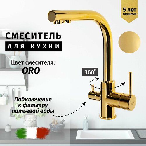 Смеситель для кухни с подключением к фильтру из латуни Vivi Felice (золото)