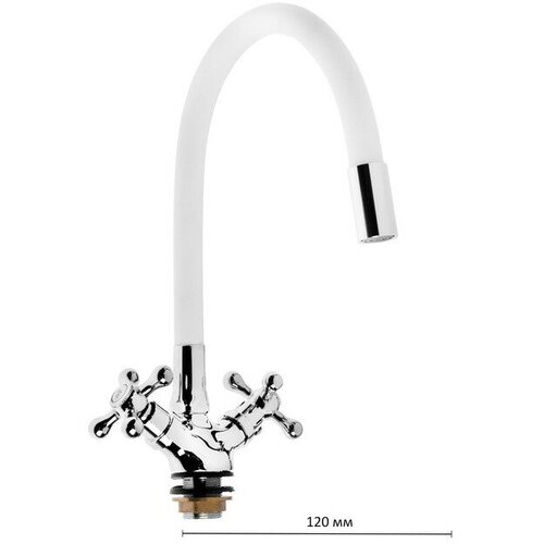 Cмеситель для кухни ZEIN Z2103, двухвентильный, силиконовый излив, силумин, белый/хром