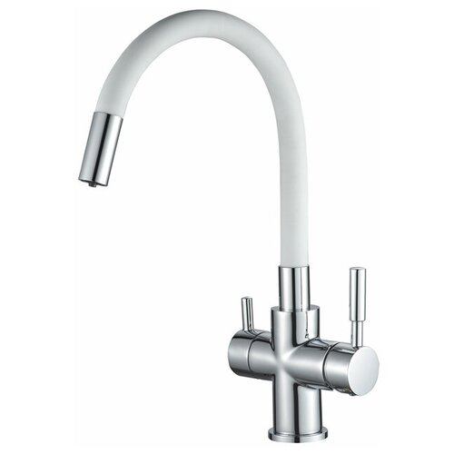 Смеситель для кухни (мойки) с подключением к фильтру для питьевой воды с гибким изливом, высокий поворотный излив SCHEIN 8683WP Белый хром